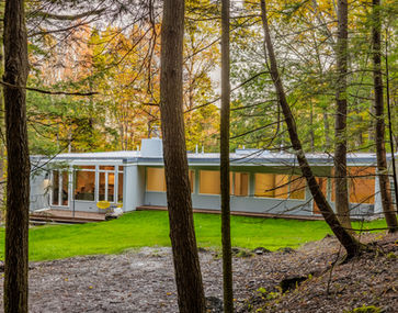 Edgar and Margaret Hunter are the architects responsible for the collection of modern houses located on Hemlock Road as well as dozens of other mid-century modern buildings throughout the Upper Valley and beyond. They were a married couple who trained at the Harvard Graduate School of Design in the 1940s alongside of the most notable modern architects of the time: Philip Johnson, Marcel Breur and Walter Gropius among them. Margaret was one of the first female students admitted to the program. Their work was recognized in many publications, and their designs have proven to be timeless.